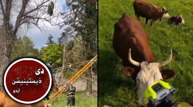 ریسکیو آپریشن کے دوران فائر فائٹرز کی جانب سے شیئر کی گئی ایک ویڈیو میں دیکھا جا سکتا ہے کہ ایک گائے بھی صورتحال کا مشاہدہ کر رہی ہے اور اس کی گھنٹی پوری کارروائی کے دوران مسلسل بجتی رہی۔