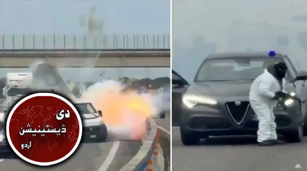 اٹلی میں پولیس کی وردی پہنے ڈاکوؤں نے دن دیہاڑے سڑک پر ڈرامائی انداز میں کیش وین لوٹنے کی کوشش کی۔
