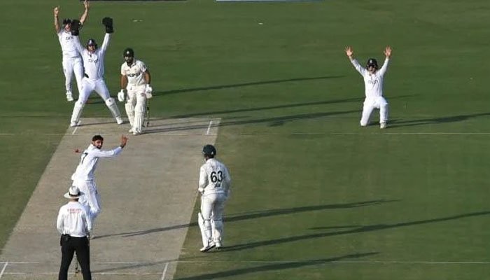تاہم یہ اسکور میں زیادہ اضافہ نہ کرسکے اور قومی کپتان 26 رنز بنا کر اسپنر شعیب بشیر کی گیند پر سلپ میں کیچ دے بیٹھے۔اس کے بعد سعود شکیل کا ساتھ دینے وکٹ کیپر بیٹر محمد رضوان کریز پر پہنچے، دونوں نے مل کر مجموعہ 151 رنز پر پہنچایا، تاہم ریحان احمد نے اس اہم پارٹنر شپ کا خاتمہ کر دیا۔