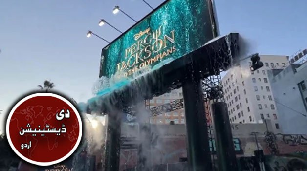 مشہور ویب سیریز ڈزنی پلس کی ’’Percy Jackson and the Olympians‘‘ کے دوسرے سیزن کی تشہیر کے لیے لاس اینجلس کے ہالی ووڈ اور وائن کے چوراہے پر یہ بل بورڈ نصب کیا گیا، جو کوئی عام اشتہار نہیں بلکہ ایک مکمل ’’واٹر انسٹالیشن‘‘ ہے۔ اس میں پانی، دھند اور چھوٹے فوارے شامل کیے گئے ہیں جو دیکھنے والوں کو فوراً اپنی جانب کھینچ لیتے ہیں۔