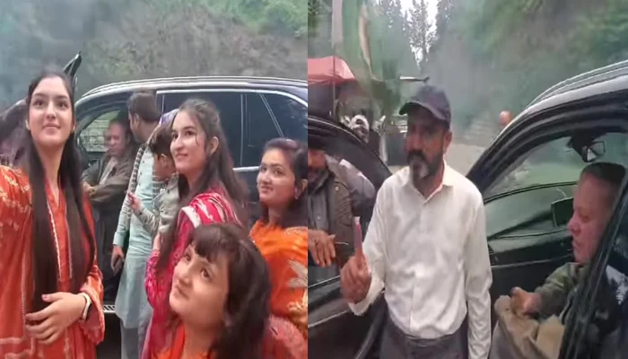 سابق وزیرِ اعظم نواز شریف نے اپنے چاہنے والوں کو دیکھ کر گاڑی روک لی۔