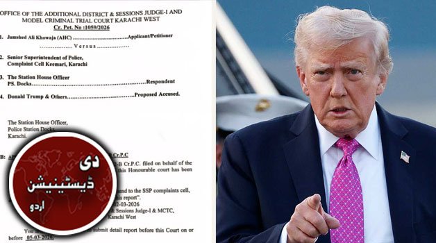 سوشل میڈیا پر وائرل پٹیشن نمبر 1095/26 ایڈیشنل ڈسٹرکٹ اینڈ سیشن جج و ماڈل کرمنل ٹرائل کورٹ ویسٹ 1 میں دائر ظاہر کی گئی ہے۔ ڈونلڈ ٹرمپ کے خلاف یہ پٹیشن ہائیکورٹ کے وکیل جمشید خواجہ نے دائر کی ہے جس میں ایس ایس پی کمپلین سیل اور ایس ایچ او ڈاکس کو فریق دوئم و سوئم بنایا گیا ہے جبکہ فریق چہارم میں امریکی صدر ڈونلڈ ٹرمپ اور دیگر کو شامل کیا گیا ہے۔