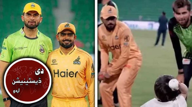 میچ کے اختتام پر بابر اعظم کو ننھے عالیار آفریدی کے ساتھ کھیلتے ہوئے دیکھا گیا۔